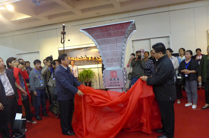 中国公共关系协会常务副会长兼秘书长王大平(右)和大同市人大常委会主任梁凤书(左)为“镜美尊”揭幕