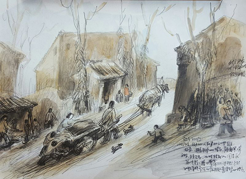 李小超乡村记忆系列绘画作品《集市》