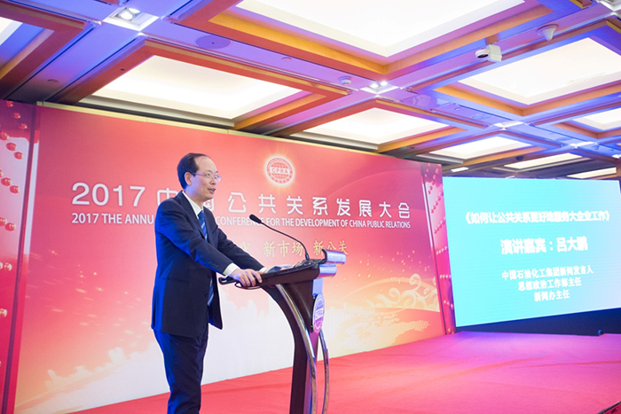 中国石油化工集团新闻发言人、思想政治工作部主任、新闻办主任吕大鹏在演讲中
