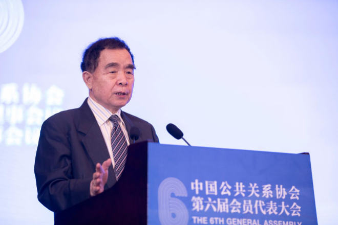 中国公共关系协会第六届理事会会长郭卫民向与会代表介绍新一届理事会人员构成、未来使命等内容。
