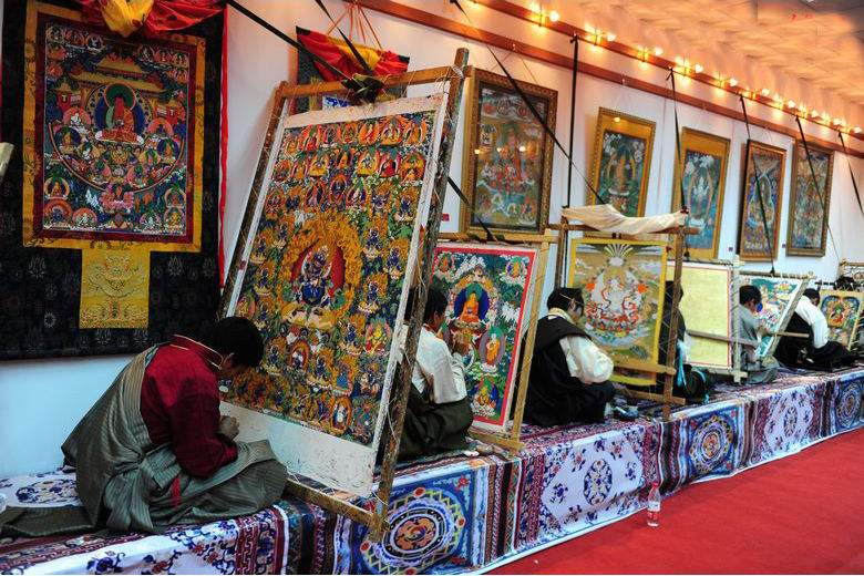 青海同仁热贡画院免费培训贫困牧民唐卡绘画技艺
