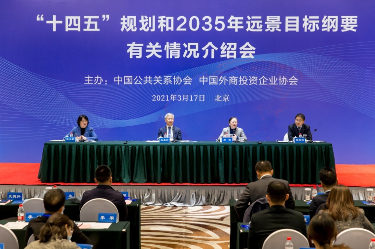 2021年3月17日下午,由中国公共关系协会和中国外商投资企业协会共同举办的“‘十四五’规划和2035年远景目标纲要有关情况介绍会”在京举行,在华外商投资企业代表200余人参加。