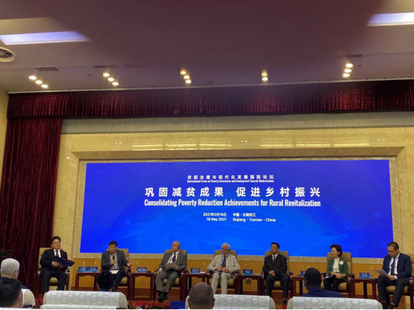 2021年5月18日,贫困治理与现代化发展国际论坛在云南怒江召开,会议主题为“推进全球贫困治理促进现代化发展”。来自18个国家和联合国等4个国际组织的驻华使节、官员和专家学者,共约150多位中外嘉宾出席论坛,探讨中国减贫经验对全球贫困治理的启示,以互尊互鉴精神推动减贫和发展领域合作,共商世界可持续发展和现代化进程之道。
