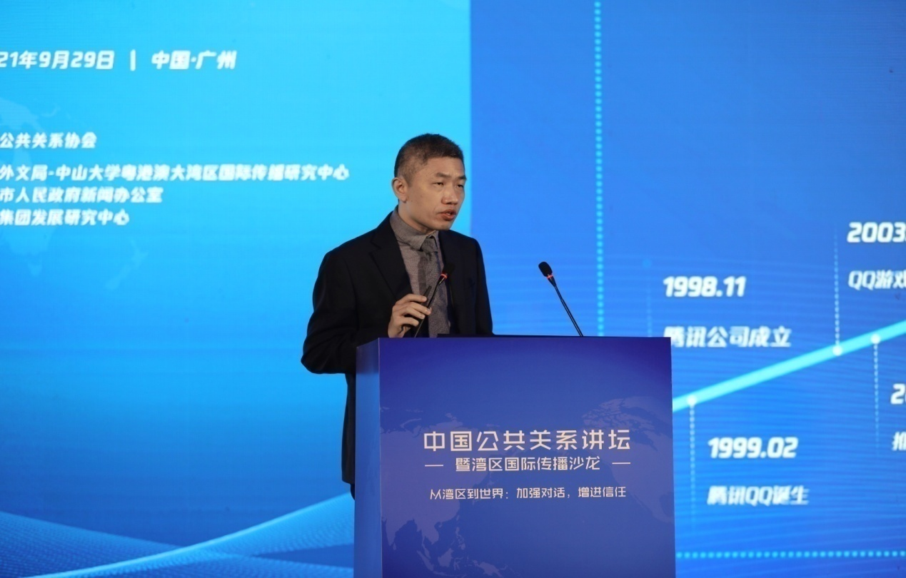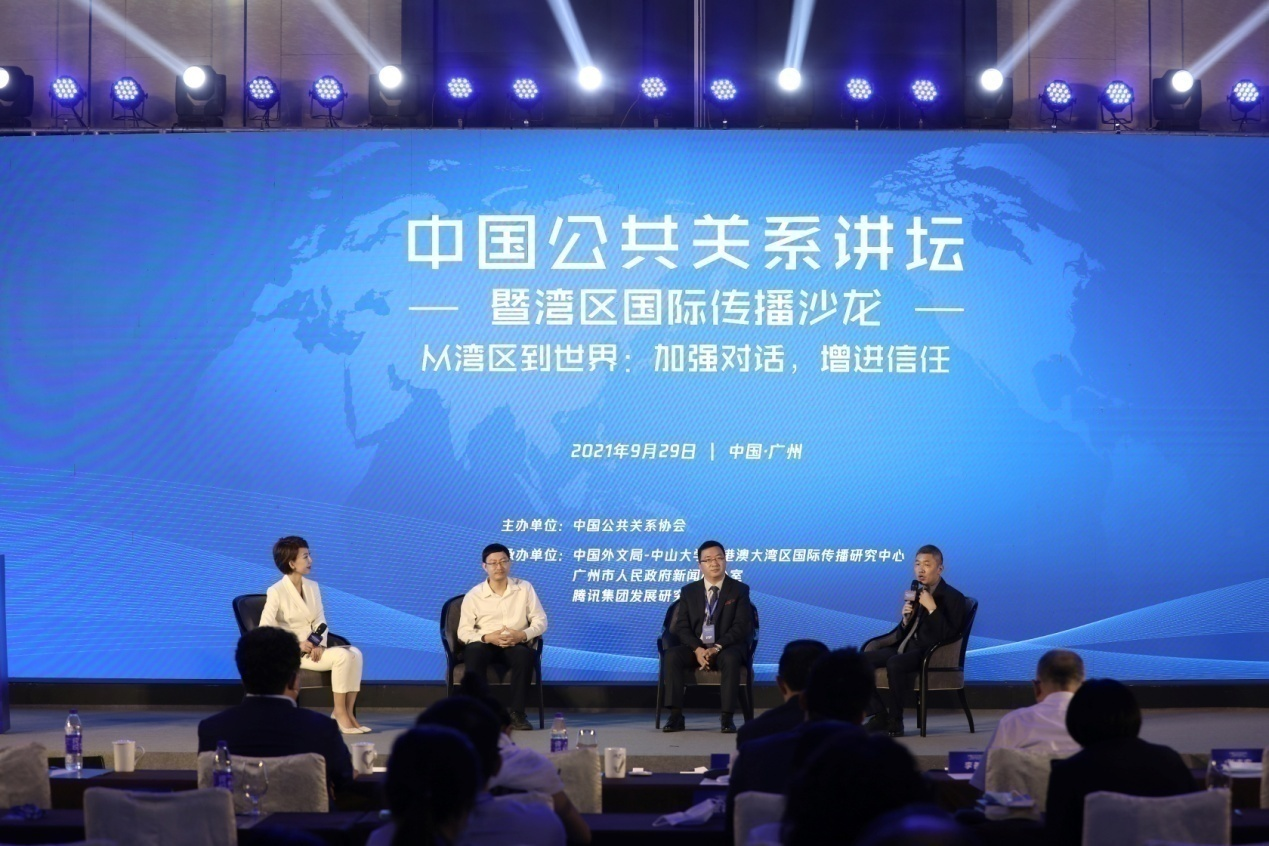 9月29日,由中国公共关系协会主办的“中国公共关系讲坛暨湾区国际传播沙龙”在广州举行。本期讲坛以“从湾区到世界:加强对话,增进信任”为主题,由中国外文局-中山大学粤港澳大湾区国际传播研究中心、广州市人民政府新闻办公室及腾讯集团发展研究中心共同承办。中国公共关系协会会长、国务院新闻办公室原副主任郭卫民出席论坛。百余位来自有关部门、学界、企业界代表参加论坛。