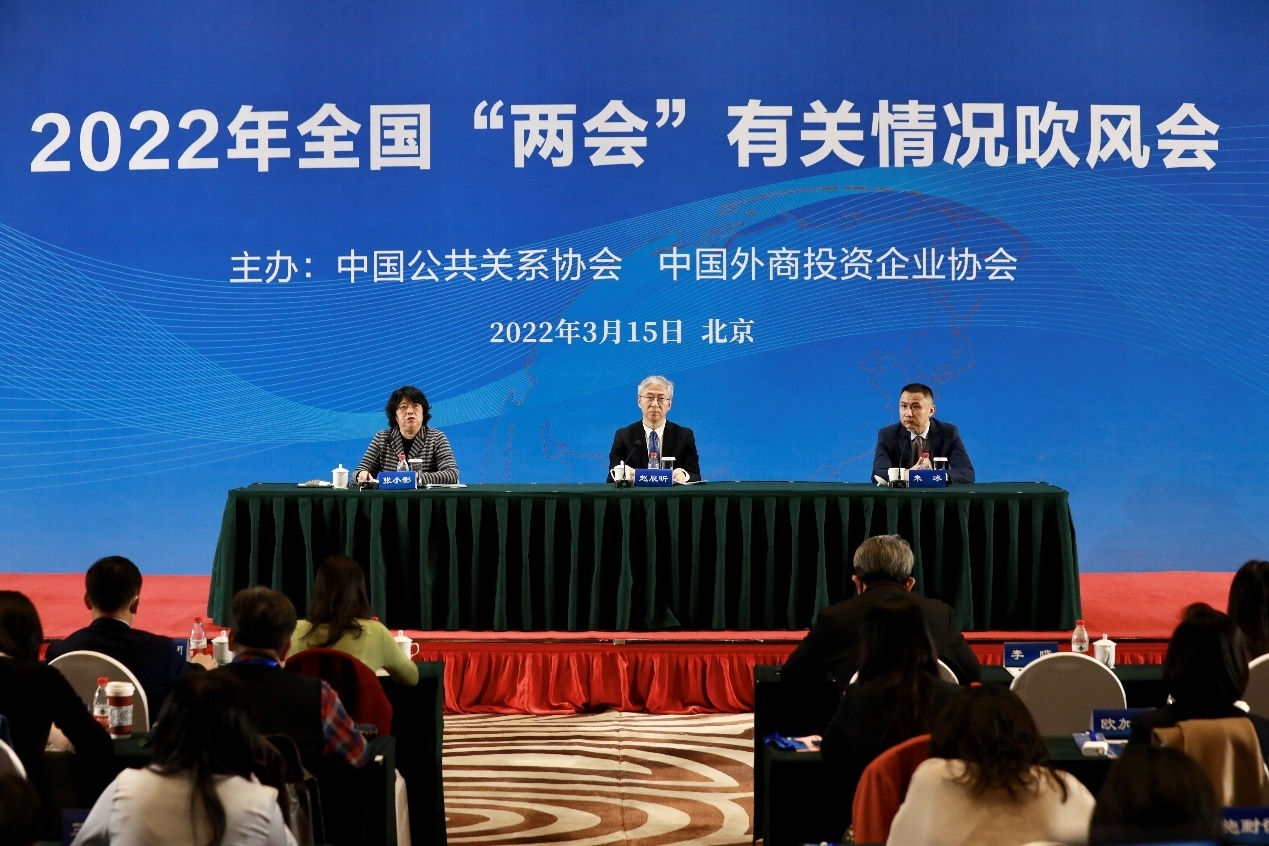 为帮助在华外资企业及协会会员单位更好了解全国“两会”精神及我国宏观经济形势与政策,中国公共关系协会与中国外商投资企业协会于3月15日在京共同举办2022年全国“两会”有关情况吹风会。国家发展改革委党组成员、秘书长赵辰昕,商务部外国投资管理司副司长朱冰出席会议并介绍情况。全国政协委员、中国公共关系协会副会长张小影主持吹风会。