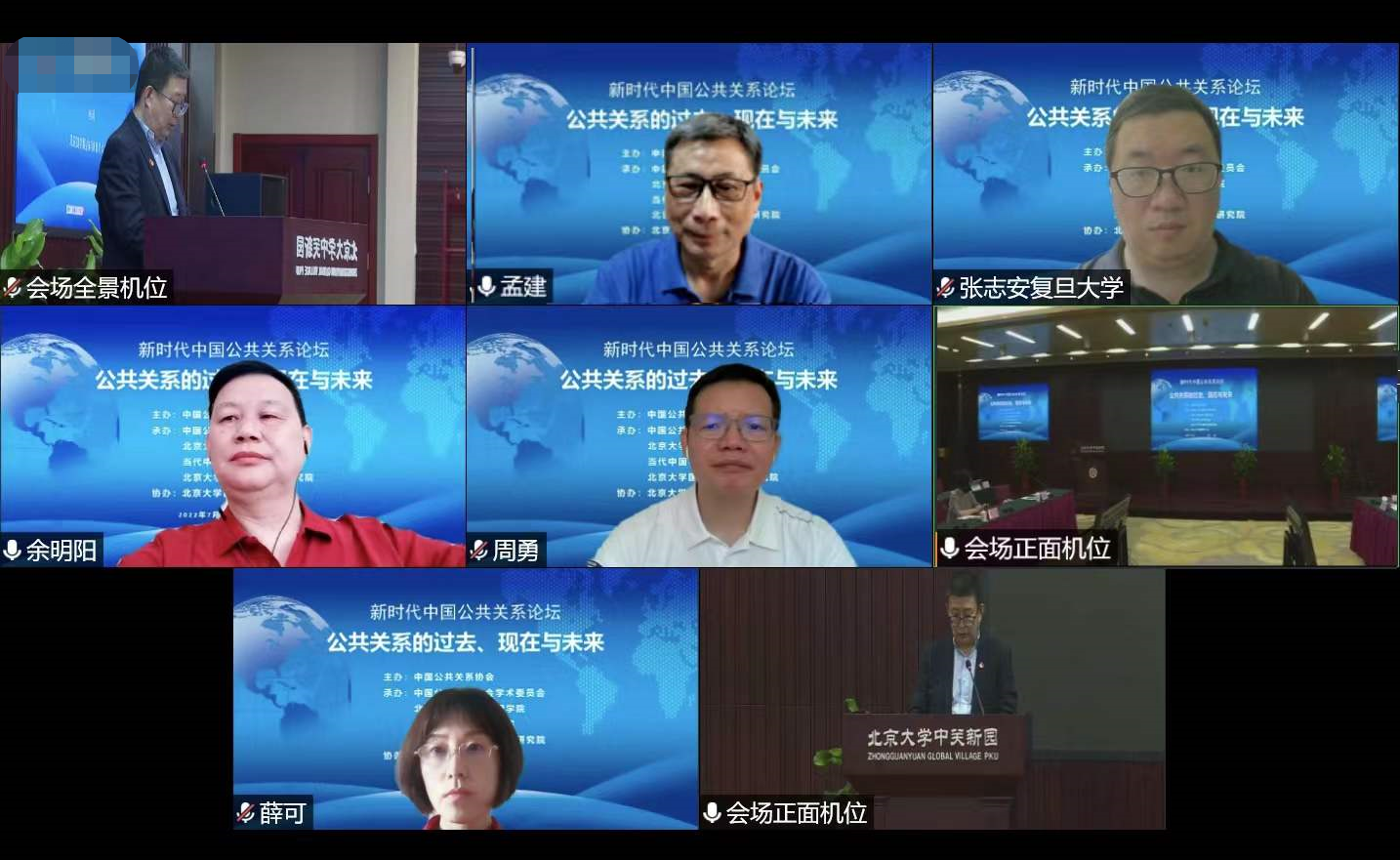 论坛下半场,清华大学新闻与传播学院院长周庆安阐述了从新闻发布看新时代政府公共关系范式创新,随后多位高校专家学者通过视频连线方式参会,发表精彩演讲。中国人民大学新闻学院执行院长周勇重点介绍了新时代中国公共关系人才培养问题。复旦大学国际公共关系研究中心主任孟建、新闻学院教授张志安,分别分享了现代公共关系理论建构的学术思考、网络舆论生态与公共关系面临的挑战。上海交通大学文化创意产业学院副院长薛可分享了公共关系在实践中的探索及典型案例。