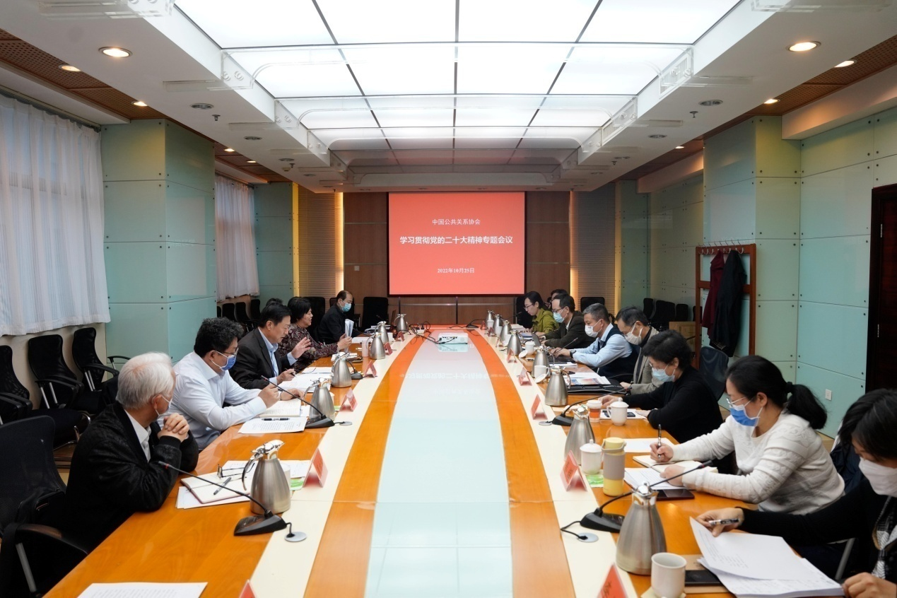 会议指出,要以党的二十大精神为指引,进一步明确公共关系事业在服务推进中国式现代化进程中应当发挥的积极作用,肩负新时代新征程职责使命,保持昂扬奋进的精神状态,精心谋划好协会下一步工作,在实践中展现协会新担当、新作为,为全面建设社会主义现代化国家贡献行业智慧和力量。会议围绕近期如何学习、宣传、贯彻好党的二十大精神,组织开展好协会相关工作进行了研究和部署。