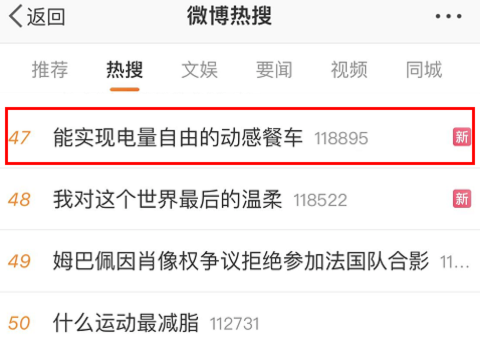 维度②通过热搜话题快速“出圈”——以麦当劳“人无我有”的环保充电单车为起点,结合“电量焦虑”情绪,将#能实现电量自由的动感餐车#成功推上微博热搜榜,进而让零碳餐厅和绿色餐厅,获得用户的主动关注。