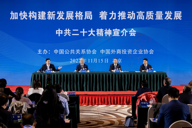 为深入宣介阐释党的二十大精神,11月15日,中国公共关系协会与中国外商投资企业协会在京共同举办题为“加快构建新发展格局,着力推动高质量发展”中共二十大精神宣介会。国家发展改革委党组成员、副主任、秘书长赵辰昕,工业和信息化部党组成员、副部长辛国斌,商务部党组成员、副部长盛秋平出席并介绍情况。全国政协委员、中国公共关系协会会长、国务院新闻办公室原副主任郭卫民主持宣介会。
