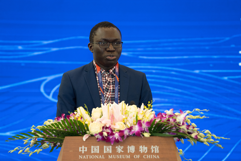 ▲北京第二外国语学院的马里留学生张衣笙致辞