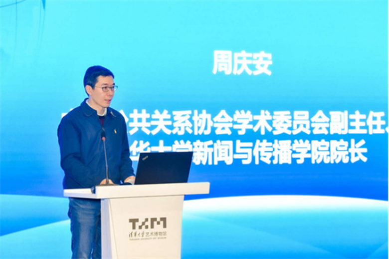 论坛承办方代表、中国公共关系协会学术委员会副主任、清华大学新闻与传播学院院长周庆安感谢中国公共关系协会对清华大学新闻与传播学院的研究工作和人才培养工作给予的大力支持,重点阐述了新时代媒体在公共关系事业发展、讲好中国故事的历史进程中发挥的重要作用。