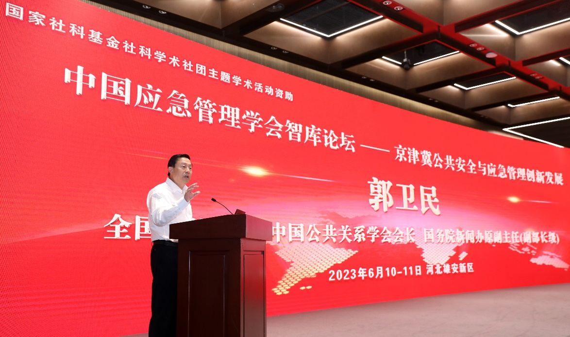 应中国应急管理学会邀请,中国公共关系协会会长、国务院新闻办公室原副主任郭卫民6月11日在河北雄安出席中国应急管理学会智库年度论坛,以“我国应急管理事业快速发展彰显中国共产党坚持以人民为中心的执政理念”为题作主旨演讲。中共中央党校(国家行政学院)副校(院)长龚维斌,河北省人民政府党组成员、副省长董兆伟,中国应急管理学会会长洪毅等出席开幕式并致辞。
