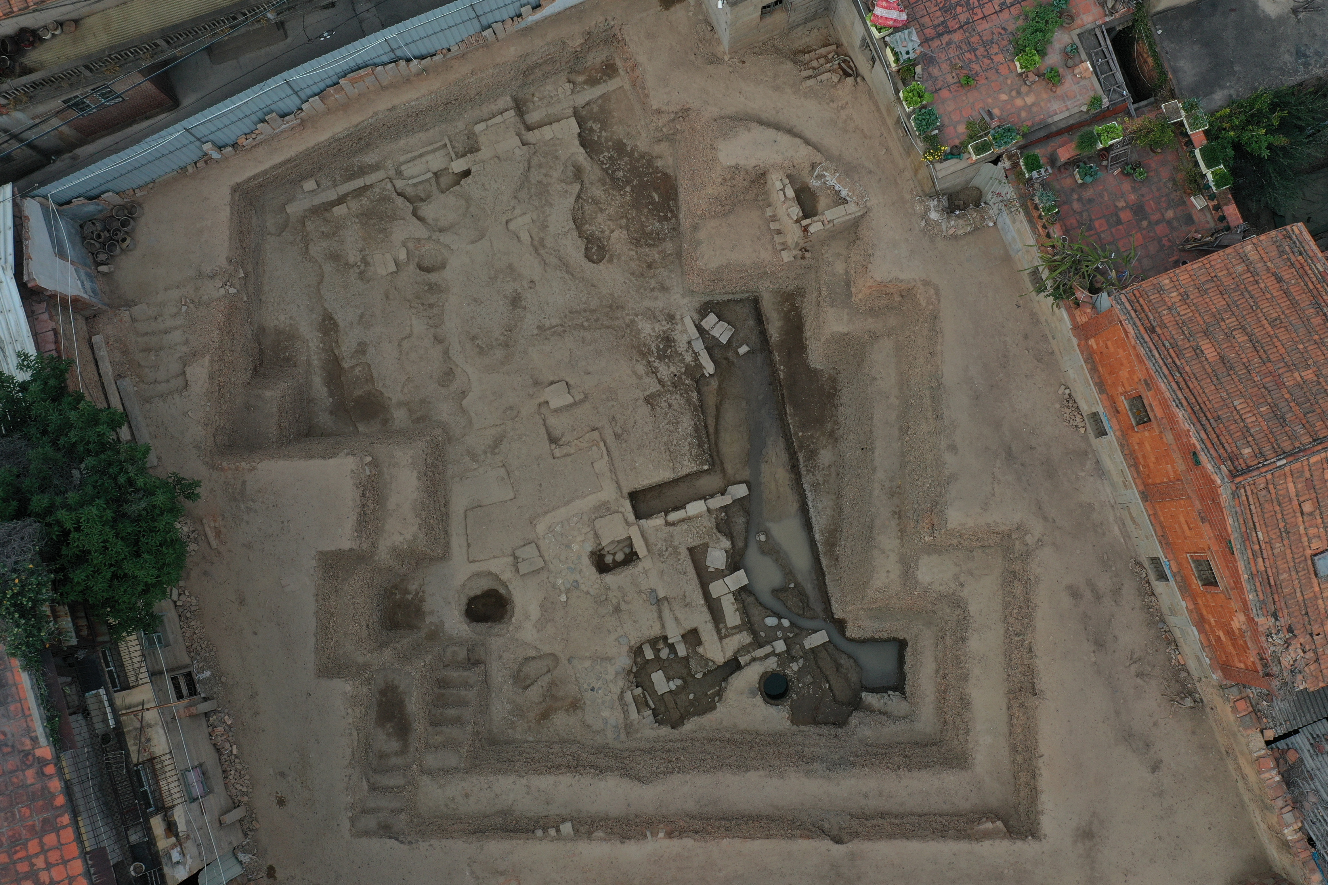 6.南外宗正司是1130年以来迁居泉州的宋代皇族群体的管理机构。这一群体是泉州多元社群中具有影响力的组成部分之一,他们不仅提升了泉州的消费能力,还积极参与海洋贸易。南外宗正司的设置进一步强化了国家政权对泉州海洋贸易的推动,体现了强有力的官方管理保障。它与泉州文庙及学宫、开元寺、老君岩、清净寺、伊斯兰教圣墓、草庵摩尼光佛造像等共同反映出宋元泉州的世界性多元社群。遗址位于肃清门西南,即开元寺的南部。目前已考古发现两处建筑基址、一处水岸设施、一处沿岸道路,出土建筑构件、瓷片等文物。建筑构件包括瓦件、脊兽、砖块等。瓦当纹样包括莲瓣、牡丹、芙蓉花等花卉图案和少量兽面纹,砖块上刻有“官”字,表明其与官方建筑有关。一些瓷器残片上有墨书,其内容与干支纪年、机构名称或人名有关,是与皇族群体相关的重要线索。