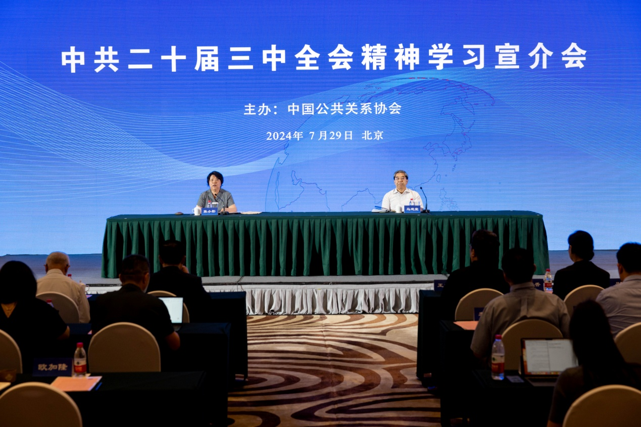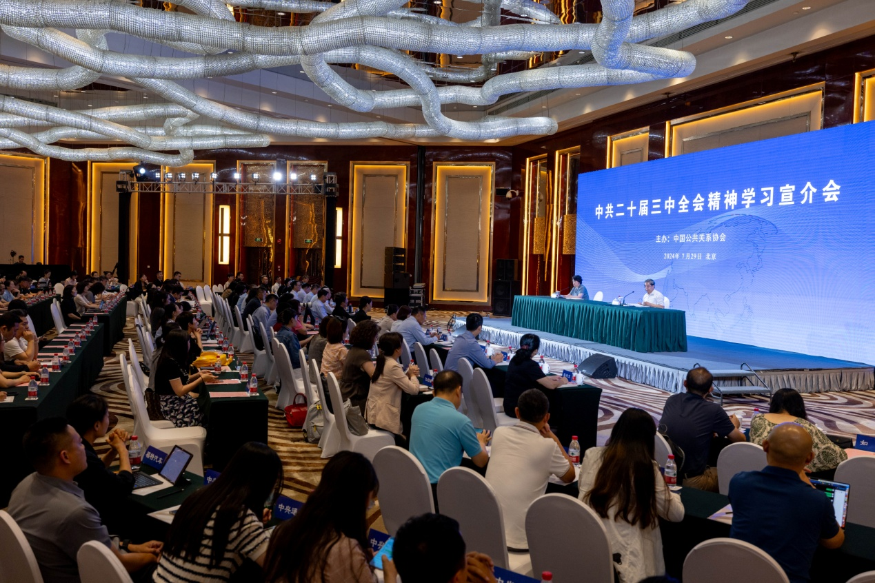 中共二十届三中全会向国际社会发出了中国坚定不移高举改革开放旗帜、持续推进更高水平对外开放的强烈信号。7月29日,中国公共关系协会在京举办中共二十届三中全会精神学习宣介会。全国政协常委、经济委员会副主任,国务院发展研究中心原党组书记马建堂出席并作主题分享。在华外资企业、国有和民营企业、国内外公关公司和地方公共关系协会代表等200多人通过线上线下参加会议。