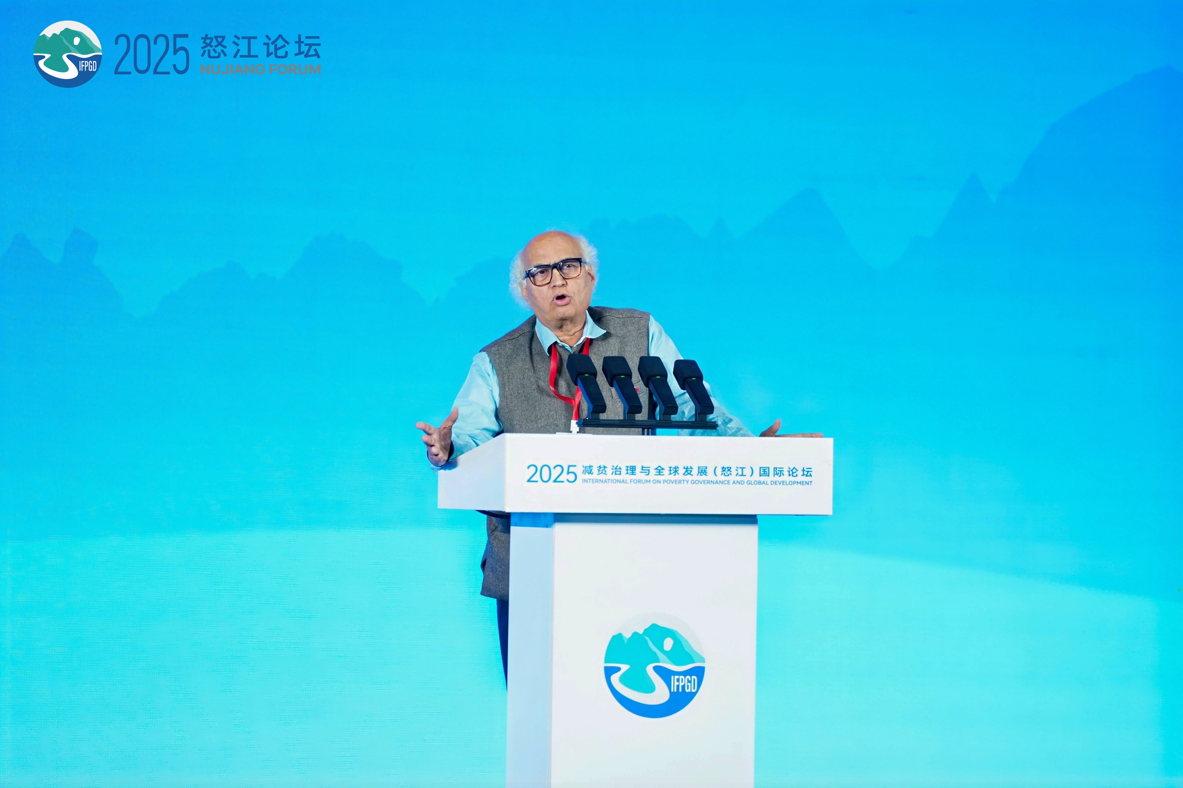 印度“新南亚论坛”创始人、前总理顾问苏廷德拉?库尔卡尼在2025减贫治理与全球发展(怒江)国际论坛演讲。
