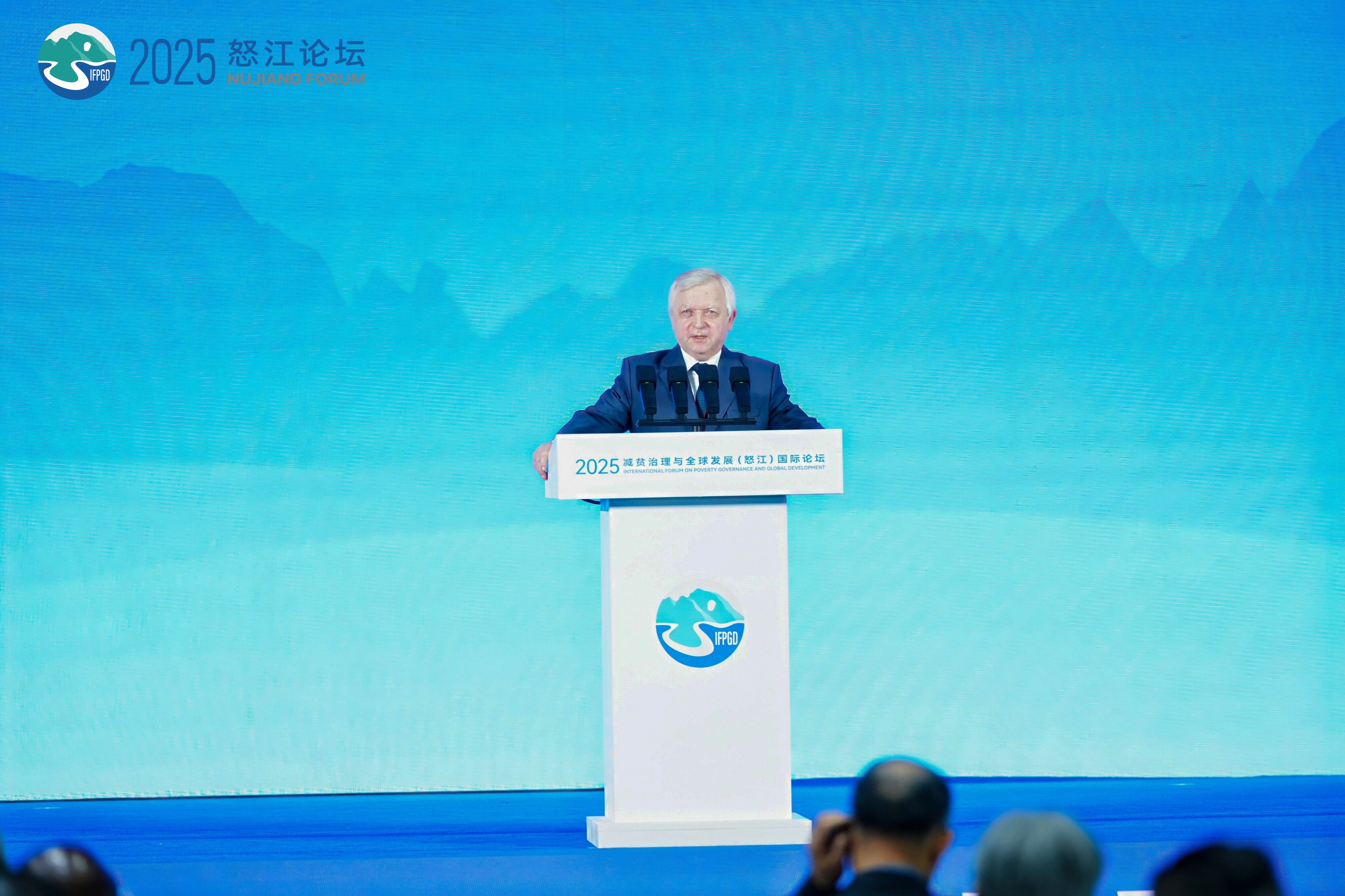 白俄罗斯—中国友好协会主席、白俄罗斯前副总理阿纳托利?托济克在2025减贫治理与全球发展(怒江)国际论坛演讲。