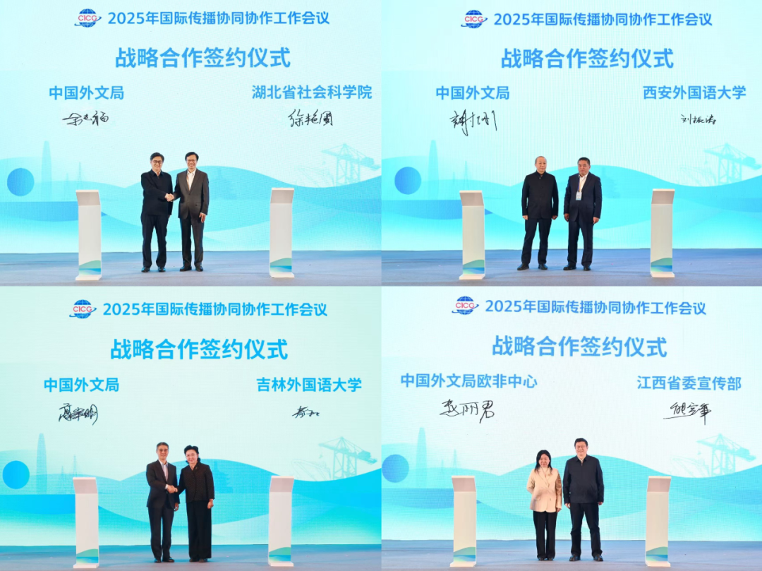 活动期间,中国外文局分别与湖北省社会科学院、西安外国语大学、吉林外国语大学签署战略合作协议,中国外文局西欧与非洲传播中心(今日中国杂志社)与江西省委宣传部签署战略合作协议。